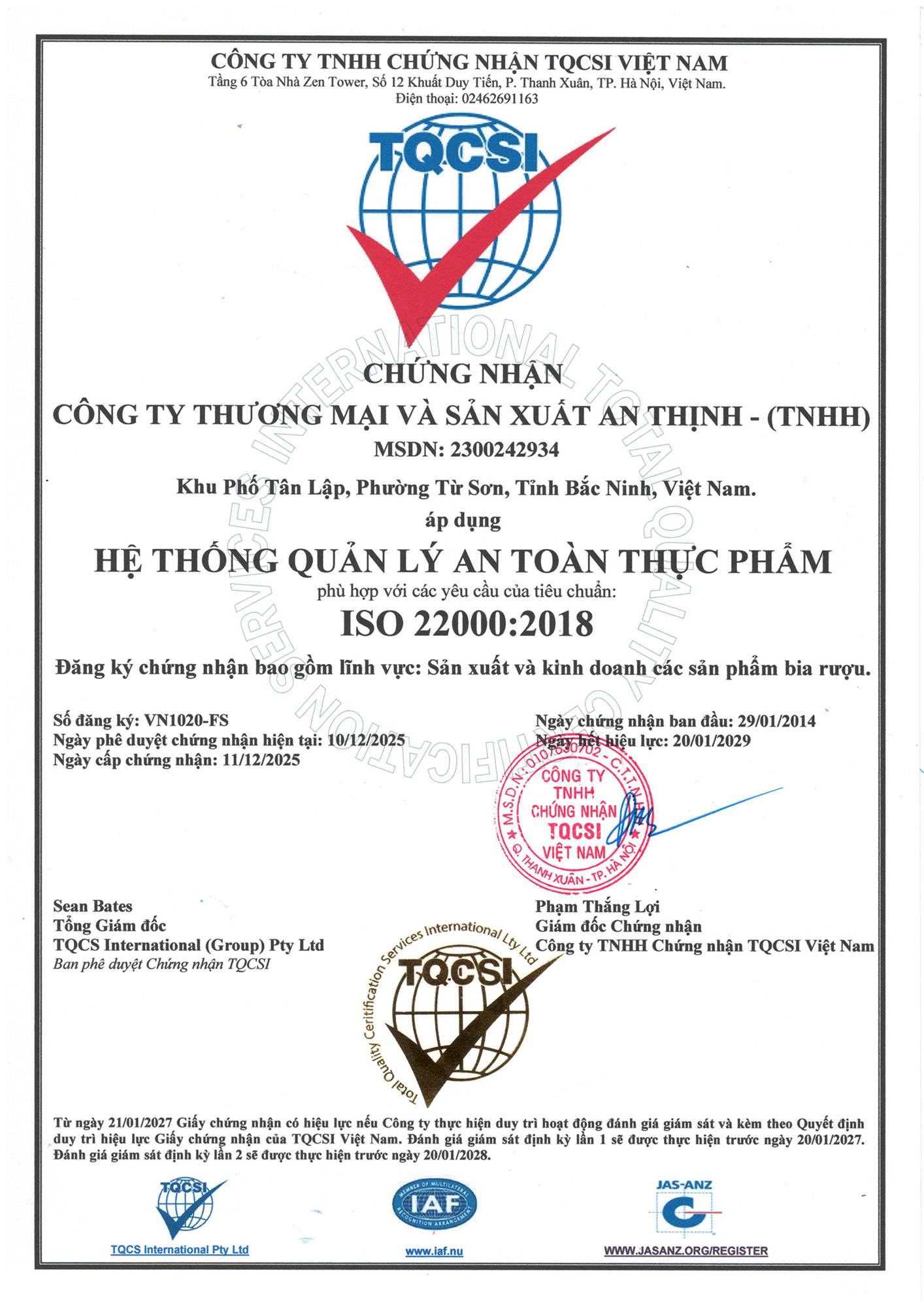 SẢN XUẤT PHÂN PHỐI BIA, RƯỢU AN THỊNH